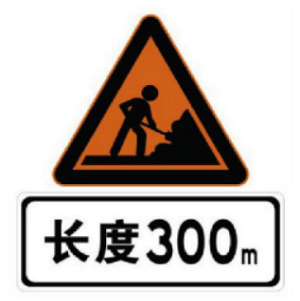 第二類是作業(yè)區(qū)長(zhǎng)度標(biāo)志,此類標(biāo)志告知駕駛?cè)藛T緩行路段長(zhǎng)度;標(biāo)志牌使用橙色反光膜做為底膜,圖案部分與邊框使用黑色反光膜制作,搭配一塊長(zhǎng)度距離的輔助標(biāo)志一起安裝。
